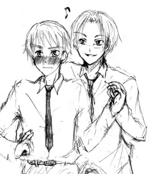 下の続き…(ヘタリアCP絵注意) ヘタリアCP絵です…BLです… まずは昨日の続き。米英愛の桃香の為にみょろっと描いてみたり。 二人とも似ない…似ない…(涙)独伊に次ぐ王道…あー可愛いなあイギリスは…そして切ないな… そんでもって今日…何故かふと希日が描きたくなってがしがし描いてそのまま塗り塗り。 ああ微妙にでかい… ギリシャじゃないとか言わないで(どう描いても似ない)あと慣れない事はするもんじゃないですね…筋肉ってどうやって描くんですか… ていうかあれ…なんでこんな甘い絵に…あれれ…ギリシャは日本の事大事に大事に優しくしてあげたいと思っているといいなあ。そういえば日本の名前(本田菊)萌え。 そういえばりあたんとこのロシア様に激しく動機息切れ。ロシア様描けません。 PR |